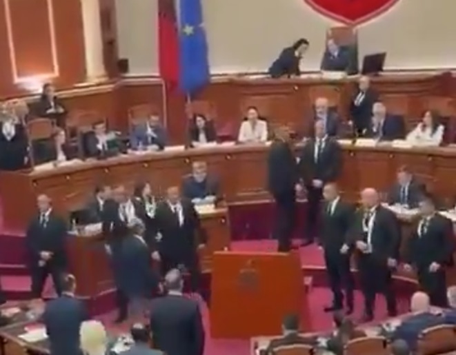 Но, опозициските пратеници ја прогласија виртуелната министерка за „неуставна“, што предизвика тензична атмосфера. По нивните забелешки, Диела возврати дека се чувствува навредена, по што дојде до инциденти и нарушување на редот во парламентот.